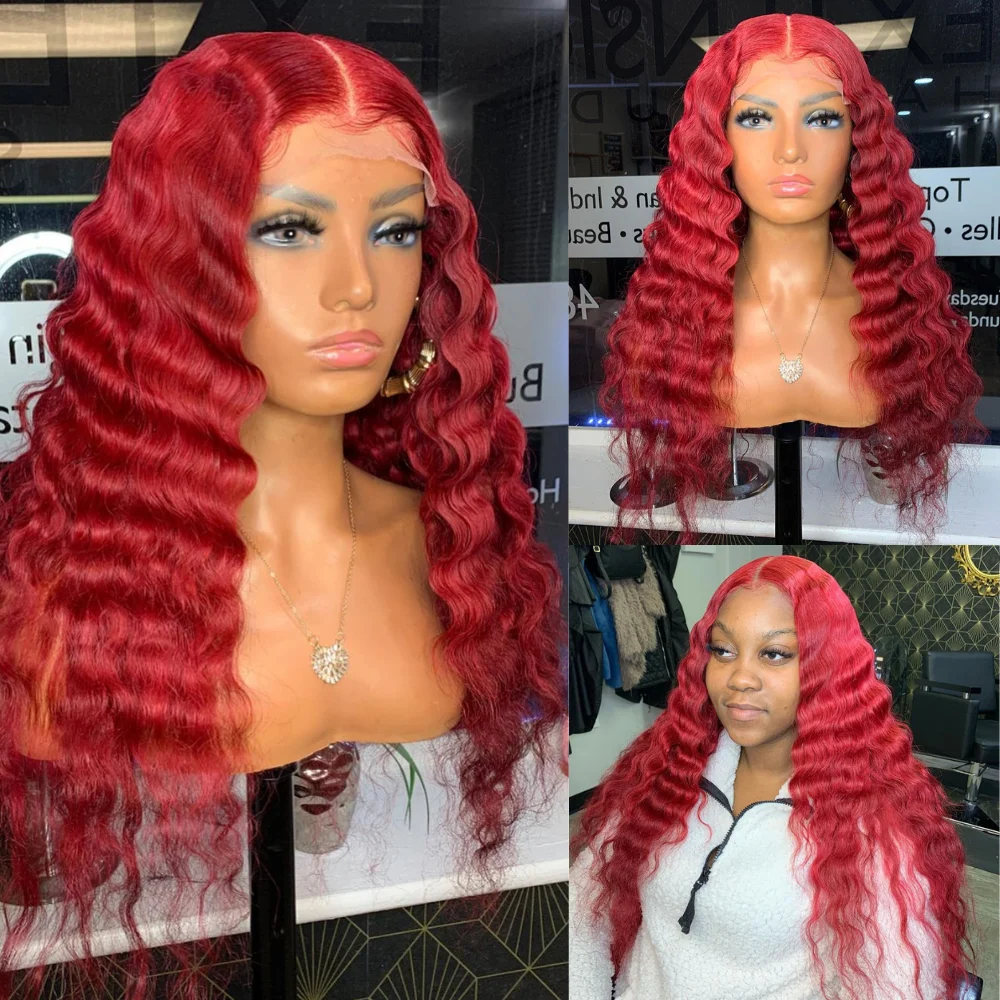 Loose Deep Colored Red Human Hair T Part Lace Front Wigs 150 Red Burgundy Remy Brazilian Lace Frontal Wigs For Women Plucked Aliexpress Hair Extensions Wigs
